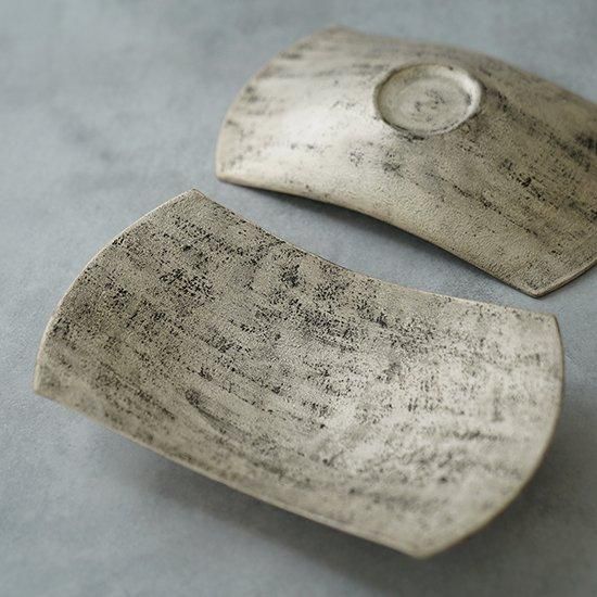 黒の釉薬に銀彩を重ねた仕上げは、経年で銀が磨れると、下地の黒が朧げに覗きます。